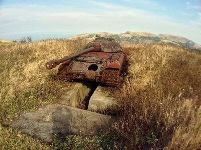 На сопках бухты Крабозаводская острова Шикотан Курильской гряды, расположена рота танковых огневых точек времён Великой Отечественной Войны На боевое дежурство их поставили сразу после капитуляции Японии в 1945 году. И вплоть до 1994-го года они были в боевой готовности.