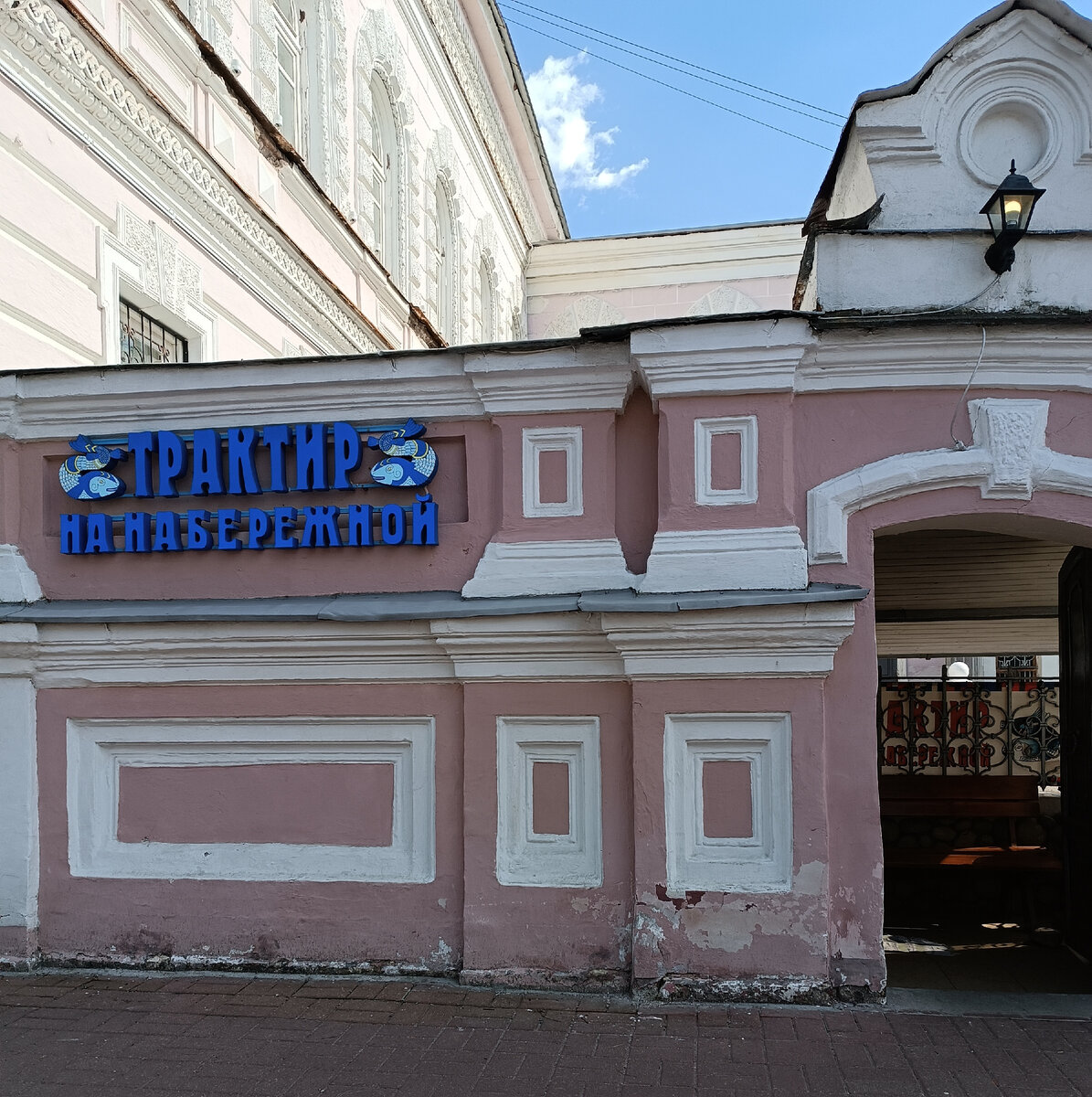 1 мая 2024 года Здравствуйте, друзья! Проходя по Волжской набережной набрела вот на такое заведение с милым русским названием "Трактир". Время как раз приближалось к раннему обеду, места свободные были, но немного, решила зайти. Это видимо хозяйка трактира, а может жена хозяина. Тут тебе и лапти, и снопы, и утюги,, и много чего ещё русского старинного. В самом зале тоже изобилуют предметы крестьянского русского быта. Официантки в сарафанах, официанты в жилетах и картузах. В меню русская кухня тоже присутствует. Но есть и салат оливье и кофе по-ирландски. Очень порадовало горячее блюдо, это была тушеная картошка с грибами и овощами в порционной сковородочке, очень горячее, с пылу, с жару. Всё было очень вкусно, включая и кофе с виски и взбитыми сливками. Правда за скромный обед и два кофе пришлось выложить около 1000 рублей, но мы же на отдыхе, а экономить дома будем. Может быть. К моменту, когда я свой обед заканчивала, в зале свободных мест уже не осталось, многие столики были заброн