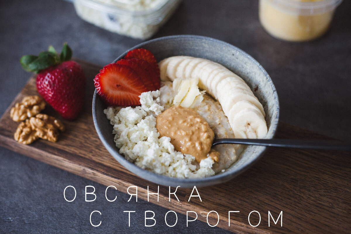 Овсянка с творогом, арахисовой пастой и бананом Ингредиенты: