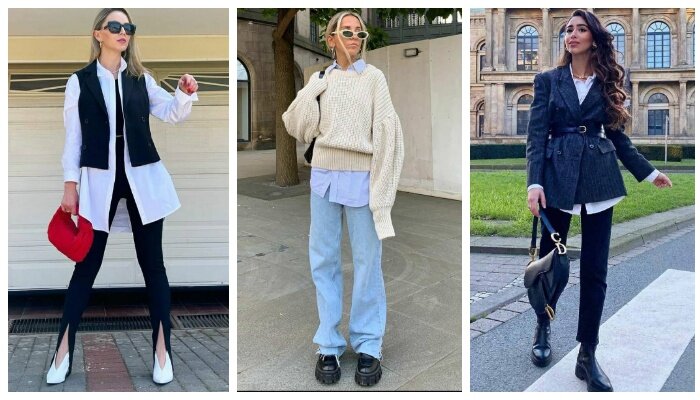 Предметом гардероба, способным создать удачный образ, является рубашка. В данной статье эксперты моды предлагают 12 стильных вариантов, как можно стильно носить рубашку в текущем сезоне. Давайте начнем нашу подборку с образа, в котором белая рубашка выступает в роли свободной туники. Для создания модного образа стилисты объединили удлиненную белую рубашку с контрастным корсетом, черными леггинсами, массивными ботинками на шнуровке и зеленой сумкой в стиле "багет". Также комбинировать удлиненные модели светлых рубашек весной и летом, будет уместно с кожаными майками и клетчатыми брюками клеш. Светло-голубая рубашка свободного кроя + серые брюки широкого кроя + светло-серые кроссовки + розовый клатч необычной геометрической формы — пример стильного кэжуал аутфита. Перед вами женственный образ, который «пропитан» элегантностью и дороговизной. Этот look включает в себя объемную светлую рубашку, белые брюки, а также ярко-розовый клатч и босоножки с кокетливым бантиком. Этой весной гуру мод