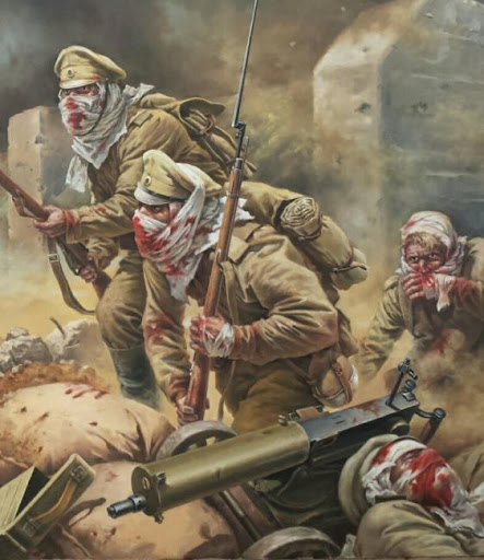 🤔Так давайте разберёмся, почему же такая оборона называется "Атака мертвецов"? Дело в том что 26 июля 1915 года, при обороне крепости Осовец на Восточном фронте во время Первой мировой войны, войска Германской империи начали использовать ядовитый газ (хлор), который в свою очередь при взаимодействии с открытыми частями тела ведёт к поражению носоглотки, ожогам глаз и токсическим судорогам грудной клетки. 🫣 💥 Из строя разом выбыло более 1600 человек, тяжелые отравления получили все без исключения. За газовой атакой последовала артиллерийская, с применением отравляющих снарядов. После этого на штурм крепости выдвинулась немецкая пехота - порядка 7000 солдат. Они рассчитывали взять обезлюдевшую крепость без малейшего сопротивления. Комендант Осовца генерал лейтенант Николай Бржозовский отдал приказ начинать атаку не смотря неначто, таким образом 13-я рота Землянского полка, которая составляла не более 100 селовек приступила к контратаке. 💥 Когда немцы увидели этот ужас,