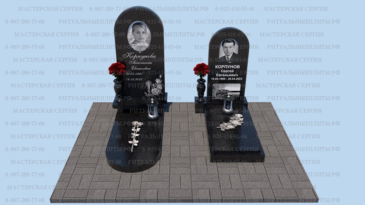 Две стандартные прямоугольные модели, артикул В-20, из черного насыщенного природного камня - Габбро-Диабаз, натуральный материал достойно сохранит память о родном на века благодаря высокой прочности и стойкости к погодным условиям, черная текстура выглядит лаконично и сдержанно, после полировки гранит приобретает глянцевый блеск. Форма памятника визуально напоминает арку, прямые четкие линии плавно подчеркивают верхний изгиб стелы, невесомая фаска красиво очерчивает форму и придает постаменту изящный и уникальный вид, гармонично и неповторимо будет смотреться на любом участке. Наша компания предлагает два готовых решения под ключ с красивым и долговечным оформлением, прямоугольный корпус памятника позволяет оформить абсолютно любое оформление на любой бюджет. Модель В-20 представлена в двух вариантах комплектации: первая модель - 120х60х8 с овальным цветным портретом на керамике, фотография изготавливается максимально детализированной и яркой, керамику обжигают при высокой температуре, в результате картинка впекается в глазурь и становится долговечной и очень насыщенной, фотография на керамике не выцветает, не трескается, ее можно протирать, надписи в прописном шрифте нанесены методом гравировки, внизу выгравирован художественный элемент, он не только украшает памятник, но и несет в себе определенный символизм для каждого человека, с помощью рисунка вы выражаете все своим чувства и скорбь к любимому человеку. Конструкция стоит на нестандартной двойной подставке, верхнее основание имеет дугообразную форму, на ней расположена классическая ваза для размещения живых цветов, нижняя подставка прочно и надежно держит постамент, надгробная плита полностью повторяет форму стелы и играет роль цветника, сплошная поверхность защищает от прорастания травы, плита и памятник выполнены из единого материала в едином органичном стиле, в сочетание с плитой даже самый простой памятник будет выглядит изысканно и солидно, на плитке расположены накладные каменные розы с серебристым покрытием - эстетичное и нежное украшение на надгробие с глубинным смыслом, розы - символ любви и вечной памяти, данное оформление придает конструкции трогательность, добавляет исключительную изюминку и воплощает светлые воспоминания, розы на надгробии способы передать всю безграничную нежность и благодарность близкому человеку, который присутствовал в нашей жизни и подарил счастье, любовь и множество моментов, цветы на надгробии никогда не завянут и не потеряют своей красоты, благодаря накладному декору место упокоения всегда будет выглядеть утонченно и невероятно красиво. Гармонично дополняет и украшает модель - лампада с серебряным корпусом, очаг для хранения живого огня, обладает уникальной прочностью и изяществом.