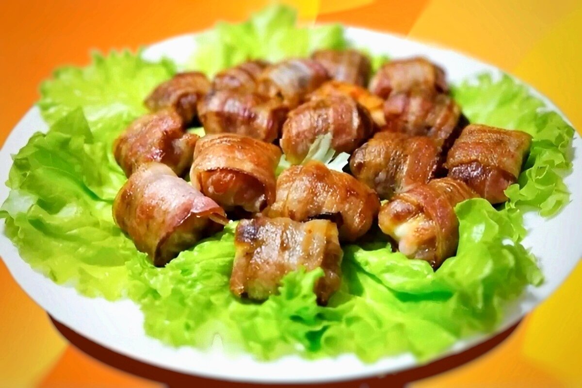 Шаг четвёртый: выкладываем всё на форму, застеленную пергаментом и отправляем в духовой шкаф, разогретый до 200 градусов. Время запекания зависит от вашей духовки, но приблизительно оно составляет в пределах восьми минут (ориентируемся по готовности бекона).