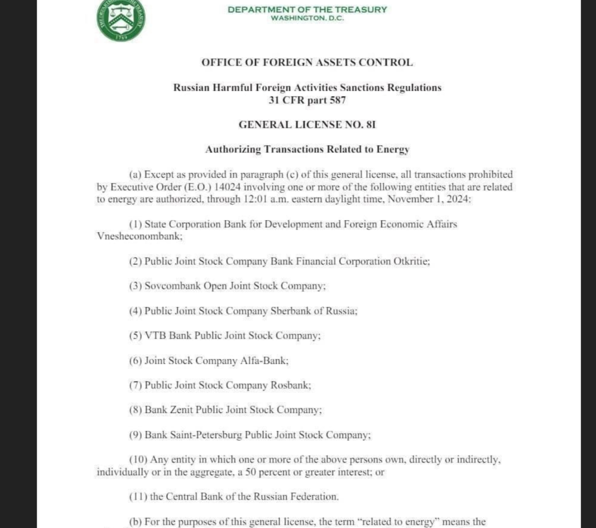 О том, что спецоперация с "санкциями против России полностью провалилась" говорят, кажется, все, кроме официальных лиц Запада. Признать - значит поставить крест на своей карьере. Но не слова, а действия порой красноречивей говорят о происходящем. Пусть и временно, но в США сняли ряд финансовых ограничений на проведение транзакций некоторыми российскими банками. Разрешив проводить платежи с ВТБ, Альфа-банк, Сбербанк, «Открытие», Совкомбанк, Росбанк, ВЭБ.РФ, «Зенит» и банк «Санкт-Петербург», а также и регулятору - Центробанк. Лицензия выдана на сделки с нефтью, газом, ураном, древесиной, углем и другими видами топлива. Соответствующий документ был опубликован на сайте американского Минфина. Говорят, все эти группы товаров и сырья и раньше закупали в России. Но, приходилось самим обходить свои же барьеры. Что привело к увеличению объёмов торговли в "не долларах". Да и вообще, если так пойдёт, то российские банки могут совсем отвыкнуть от доллара. И не гоже давать зарабатывать другим на по