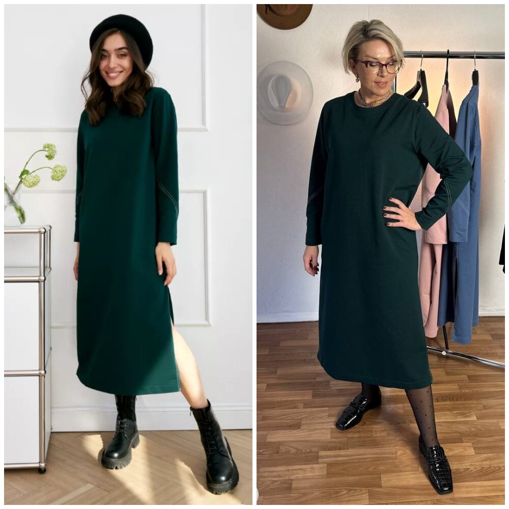 Здравствуйте, дорогие читатели! Меня зовут Ирина, я - стилист, и на этом канале показываю одежду и аксессуары с Wildberries такими, как они есть, то есть, из серии "ожидание/реальность". Мои параметры: рост 169 см, вес 67 кг, 94-74-100 ✅Основной канал: Стильно - не значит дорого! Ставьте лайк в поддержку канала, и давайте смотреть на мою сегодняшнюю покупку. Сегодня расскажу вам про платье, которое можно носить круглый год, благодаря своему составу и фасону. Модель абсолютно лаконичная и базовая, за счет чего легко сочетается с другой одеждой и аксессуарами, прямого кроя. Длинный рукав - то, что нужно для осенне-зимнего периода, но также не мешает носить платье и прохладным летом. Приглушенный изумрудный цвет. По бокам у платья есть неглубокие разрезы, что делает его более удобным в носке.