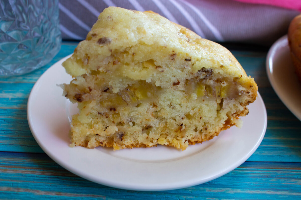 Заканчивается Пост, но постные рецепты актуальны всегда для вегетарианцев или для людей, кто не употребляет куриные яйца и молочные продукты. Кекс порадует вас своим вкусом и ароматом, он пышный, мягкий, в меру сладкий и влажный. В тесто всегда можно добавить ягоды или сухофрукты, а для аромата добавьте на выбор: цитрусовую цедру, ванильный экстракт, корицу. Хотя и без душистых добавок, банан дает кексу прекрасный аромат. Готовить эту выпечку просто, продукты нужны самые доступные. Ингредиенты: Вода - 125 мл. Масло растительное - 60 мл. Сахар - 125 г. Разрыхлитель - 0.5 ч.л. Соль - 1 щепотка Банан - 1 шт. Орехи грецкие - 3 ст.л. Мука - 225 г. Смешиваем воду и масло. Воду берем минералку без газа и кипяченную воду. Добавляем сахар в чашку. Добавляем разрыхлитель и соль в чашку. Перемешиваем до растворения сахара. Добавим в чашку муку и снова хорошо перемешиваем. У нас получится не сильно густое тесто. Орехи нарежем ножом или измельчим любым удобным способом и добавляем в тесто. Можно ор