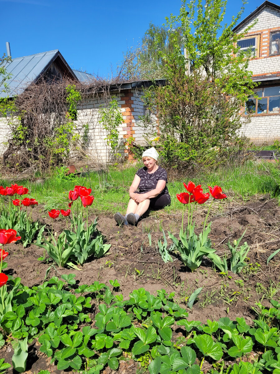 Сегодня я с мужем и сестрой ездили в деревню - ОТДЫХАТЬ!!! Сажать,полоть траву, поливать. Так наотдыхались,что если сядешь,то не встать. Но какая красота!!! Там очень хорошая земля. Все растет. Точно такие же тюльпаны у меня дома в два раза ниже. В городе только начинает трава расти, а здесь уже все заросло. В первую очередь я стала освобождать от травы цветы. В прошлом году я очень многие пересаживала. Это лилии,тюльпаны,аквилегии. Список можно продолжать. Так же полила клубнику,которую весной посадила. Вернее там , где кустики пропали,подсаживала. Морковь сажала замоченными семенами,потом долго не приезжали и она, наверное, высохла. Поэтому сделала полоски рядышком и еще досадила. Как взойдет потом вся морковь!!! В деревне,наверное, хорошо отдыхать,но работать очень тяжело. Мы много раз уже думали продать дом. У нас в городе земли хватает. Какой смысл ездить туда и там только успеваем работать. На отдых уже не хватает времени. Вместе с домом 30 соток. Мы сейчас сажаем только до з