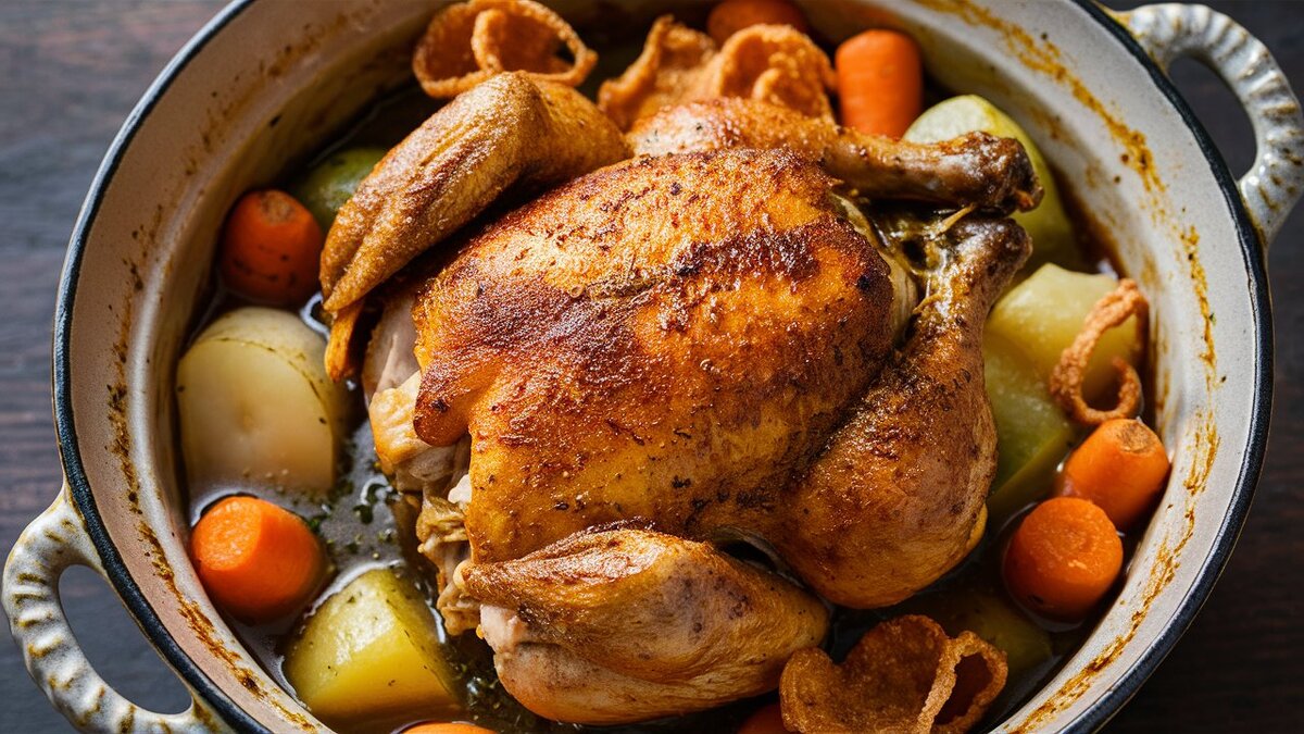 Курица с овощами в горшке - это блюдо, которое наполняет наш дом ароматом детства и уюта. Это традиционное блюдо советской кухни, которое согревало наши сердца в прошлые времена. Давайте отправимся в увлекательное кулинарное путешествие и приготовим этот восхитительный ужин вместе. История блюда: Курица с овощами в горшке - это блюдо, которое уходит корнями в далекое прошлое и стало незаменимым атрибутом семейных обедов и праздничных ужинов. Оно воплощает в себе тепло и уют семейного очага, ароматы свежих овощей и нежного куриного мяса. Это блюдо, которое любили готовить наши бабушки и мамы, передавая нам традиции и вкус домашнего уюта. Рецепт: Курица с овощами в горшке Ингредиенты: Куриные ножки - 4 шт. (Или ципленок) Картофель - 4 шт. Морковь - 2 шт. Лук - 1 средняя головка Помидоры - 2 шт. Соль, перец, специи - по вкусу Растительное масло - для жарки Вода или бульон - 1 стакан Инструкции: Обжарьте куриные ножки на растительном масле до золотистой корочки. Нарежьте картофель крупны