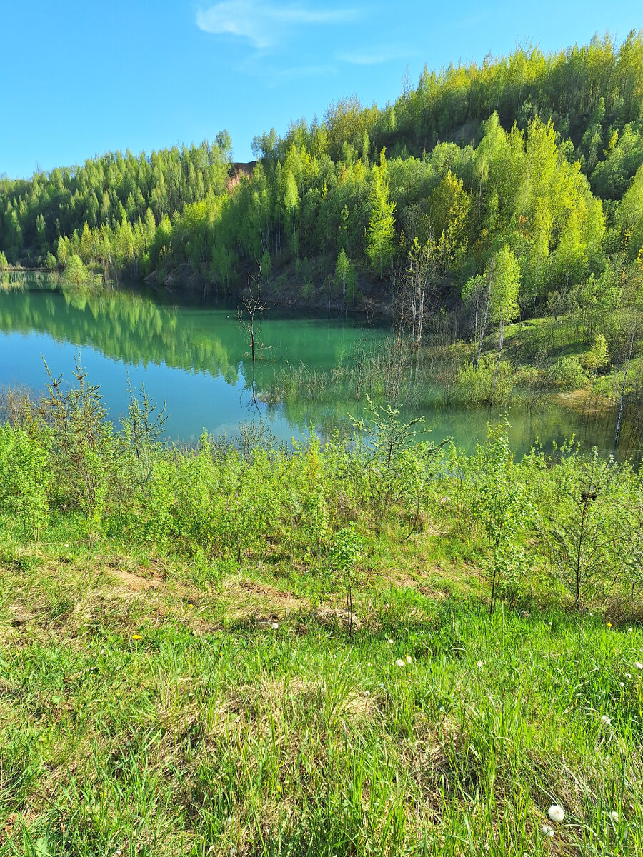 Старый карьер зарастает молодыми берёзками. А мы дальше бежим. Я уже поинтересовалась,не мешаем ли мы прогулке, на что нам ответили, что не мешаем.