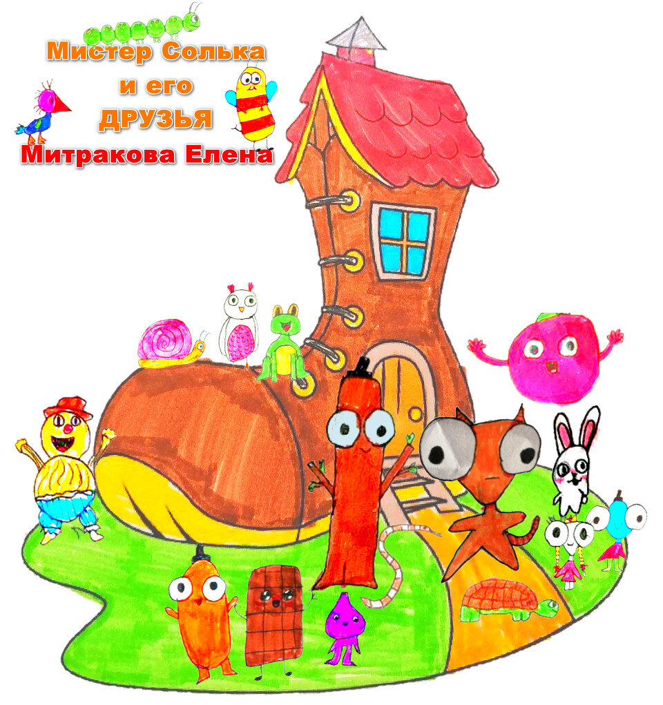 Елена Митракова В одном сказочном лесу жил был Мистер Солька. Его дом был похож на ботинок рядом с его домом стоял огромный мудрый дуб. Вокруг его дома была сделана лужайка, на которой Мистер Солька выращивал цветы. Цветы были красивые и разноцветные. На его лужайку каждый день прилетали пчелы и собирали нектар. За домом Мистера Сольки был огород на котором стояло огромное чучело, оно было сделано из соломы и выглядело очень страшно. На огороде, где росла капуста жила гусеница Буся. Неподалёку от дома находился пруд, в котором жили жаба Аля, рыбка Дуду, улитка Литка и черепаха Юся. В дубовой роще на холме жил кролик Крол, он очень любил морковку, капусту и люцерну. На черничной поляне под старым пнём жила змейка Шипля. В сосновом бору, где росли огромные сосны и кедры жил Палька, он был похожий на палку и всегда выручал своих друзей из беды. На лужайке лекарственных трав жил Шокля, вокруг его дома росли полезные лекарственные травы. Шокля собирал полезные лечебные травы, из которых он