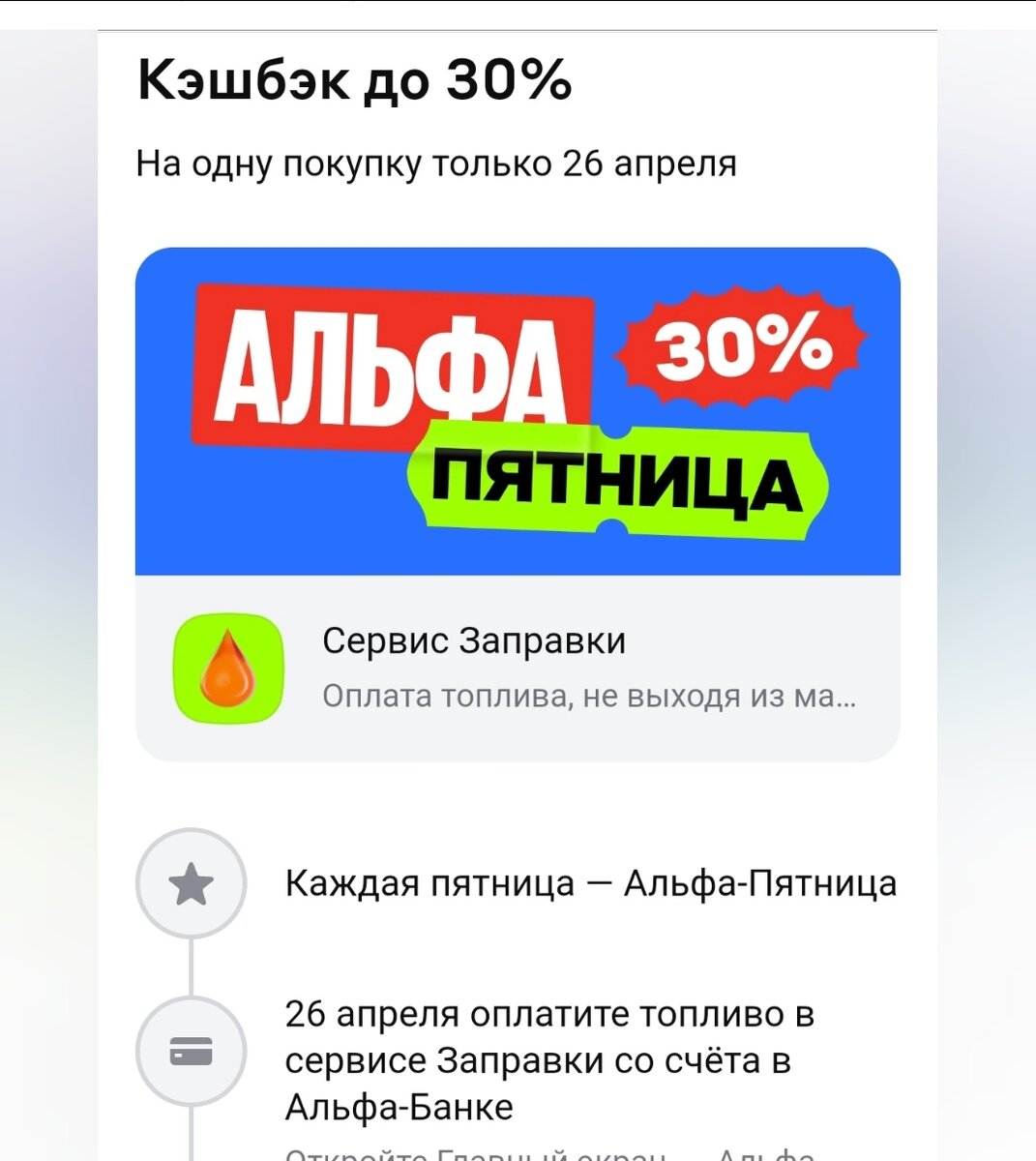 Вот уже и апрель закончился, пора подводить итоги В этом месяце очень порадовал кэшбэк на топливо. На тиньке было 15% на весь месяц и по альфа пятнице было предложение 30%. Естественно упустить такую возможность заправиться по хорошей скидке я не могла. В этот раз заправка была по полной. Но даже если бы мне нужно было заправиться на 500р я бы тоже поехала и заправилась В итоге в мае по этой категории я получу кэшбек 1323.68р Неплохой возврат с постоянных, ежемесячных затрат на бензин Так же по Тиньков был хороший возврат на озон , по партнёрке на косметику По альфе начисления будут 5000р. Это за строй материалы и немного за покупки в Кари. По карте озон начислят в мае 666р по повышенному категори. Это за автоуслуги, ремонтировали автомобиль В итоге за апрель получится Неплохая сумма около восьми тысяч, может чуть больше. Да не всегда так, месяц на месяц не приходится, но даже две тысячи вернуть это неплохо Теперь к той сумме которая получилась непосредственно в апреле На допол