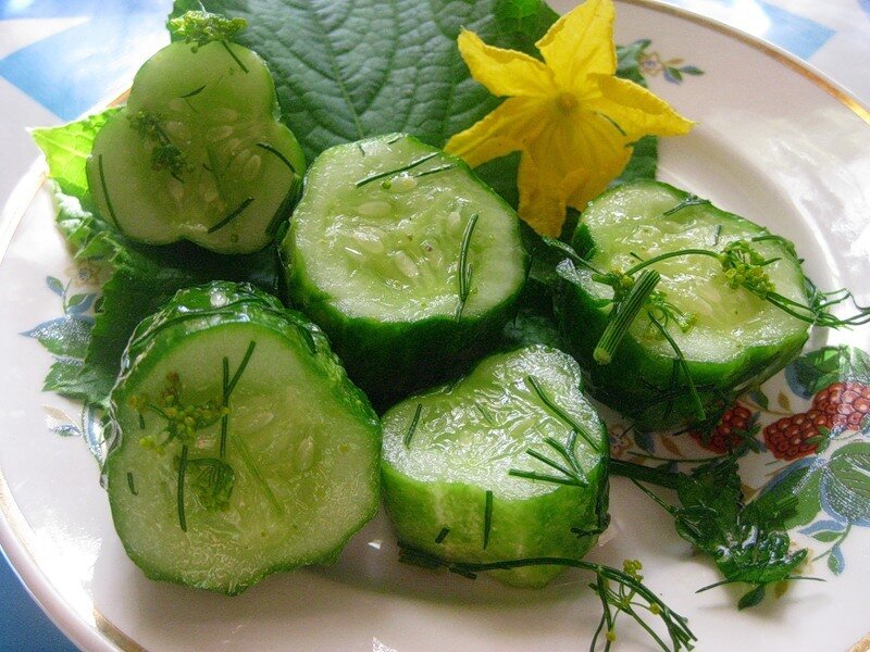 Понадобятся огурцы, укроп, чеснок и соль. Для быстрой засолки нарезать огурцы на кружочки, измельчить чеснок и укроп, добавить соль, положить в пакет, хорошо потрясти и убрать в холодильник на 30 минут. Готово, можно пробовать! @Повар на скорую руку 🧑🍳