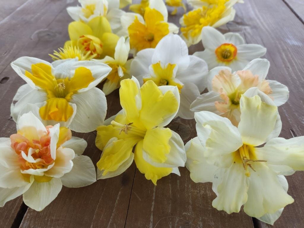 Осталось сказать, что у меня нарциссы ещё расцвели не все. Еще больше десятка видов — более поздние. Так что тут у меня представлены только те, которые цветут одновременно с конца апреля.