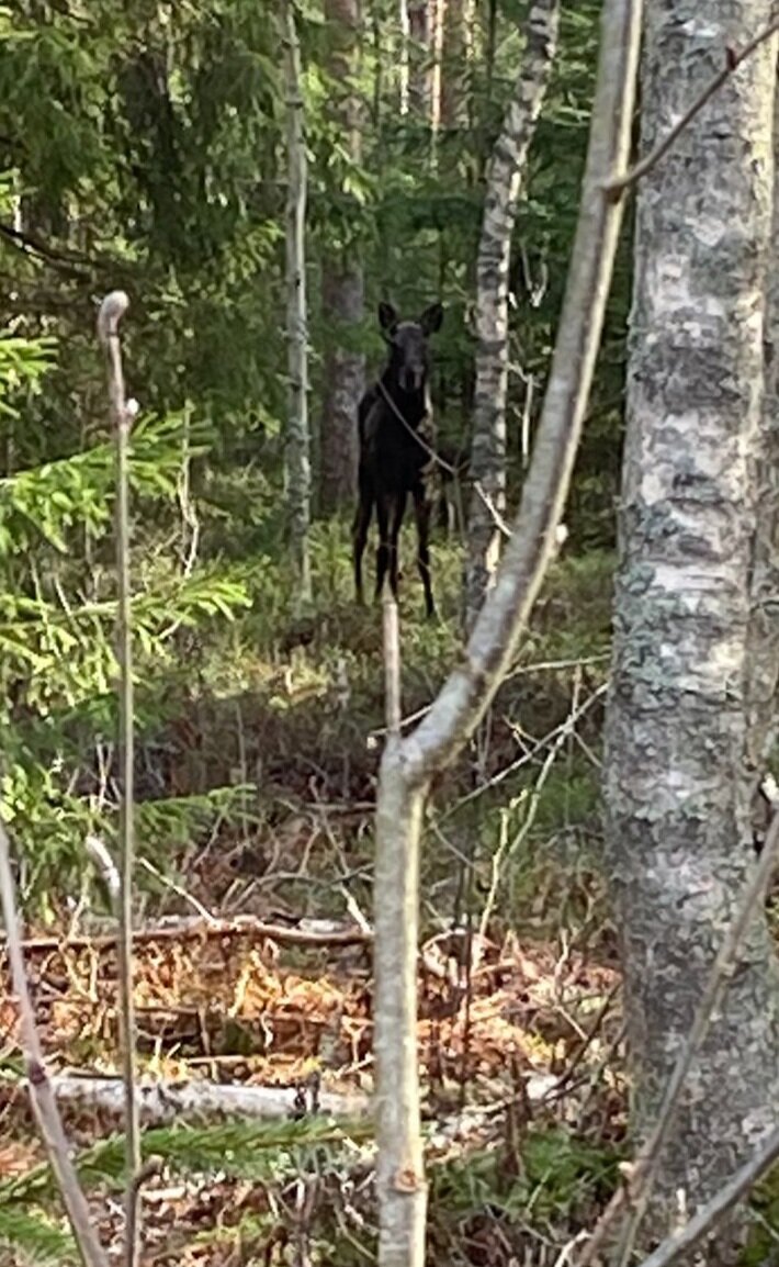 Съехались почти все дачники и кое кто уже и в лес сбегал и увидел вот такое чудо. Это лось. Их у нас на карельском перешейке становится все больше. Я в лесу их не видела ни разу. Зайцев видела. С праздником дорогие друзья! Мира нам и хорошего, доброго труда! Утро сегодня отличное, небо голубое, светит солнце и хоть праздник, а у садоводов есть свои задачи и надо что нибудь поделать в саду. Главное, что работа эта радостная и для меня бывает кое что тяжеловато, но дочь приезжает, помогает. Мир, труд, май!