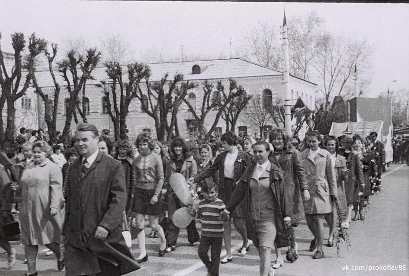 Широко отмечался Первомай в Советском Союзе - и старшее поколение сызранцев до сих пор вспоминает ту радость, приподнятое настроение, которое сопровождало этот день. К Первомаю в киосках начинали торговать красивыми воздушными шарами; в этот день битком набитые автобусы подвозили пассажиров к началу перекрытой в честь праздника улицы Советской - и горожане шли через всю Советскую к тому месту, где должны были формироваться колонны демонстрантов. По всей улице гремела праздничная музыка, кто-то уже играл на баяне в компании друзей, во дворах училищ и техникумов звучали гитары, люди приветствовали знакомых - настроение было по-настоящему праздничным. Архивные фото сохранили кадры демонстраций: видно, что каждый трудовой коллектив - а именно их чествовали в этот день - старался украсить свою колонну.