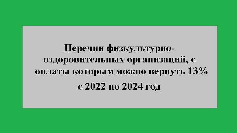 В прилагаемых файлах перечни физкультурно-оздоровительных (фитнес) организаций и предпринимателей, при оплате услуг которым можно возвращать 13% потраченных денег.