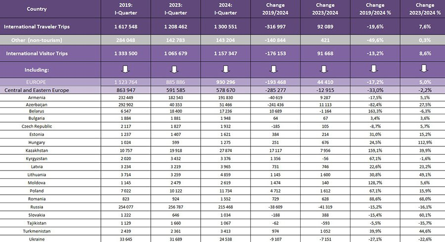 Национальная администрация туризма Грузии опубликовала отчет за первый квартал 2024 года. За этот период зарегистрировано свыше 1,3 млн визитов международных путешественников из более ста стран, что на 7,6% превышает показатели 2023 года и составляет 80,4% от уровня 2019-го. По количеству туристических визитов (930 296) зафиксировано повышение на 11% относительно аналогичного периода 2023-го и на 6,4% по сравнению с 2019-м.