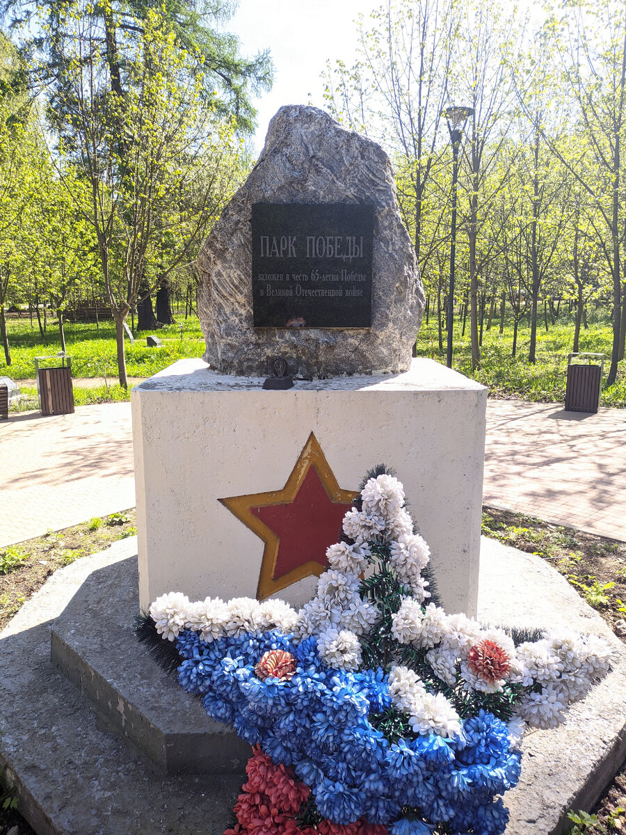 Только вчера обнаружили вот такой парк: Я так и не поняла - парк это или сквер. Но от этого он не становится менее приятным местом для прогулок. В парке несколько аллей: По бокам аллеи, каждая из которых посвящена герою Великой отечественной войны: Это очень правильно - память о героях должна жить... В парке есть прудик: А ещё есть упоминание о некоем доме, когда-то стоявшем на этом месте: К парку примыкает детский сад комбинированного вида, в котором (о чудо!) ещё сохранились логопедические группы. За забором растут тюльпаны. Охранник увидела, что мы пытаемся их сфотографировать, и пригласила нас на территорию (добрая женщина 😊): Пока мы с Таней изображали юных ботаников, наши мальчики позировали для картины "Охотники на привале": У сына самый лучший крестный ☺️: Вот и ещё одно интересное место в Голицыно мы обнаружили 🤗. Ищите и найдёте ! 😊