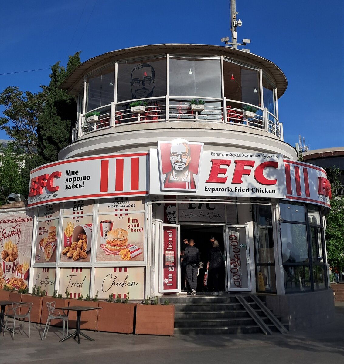 Как вы уже догадались это аналог KFC, где тоже есть куриные ножки, картошка фри, бургеры, роллы. Ценник чуть выше и меню довольно-таки обширное! Я не любитель ножек, но что касается роллов, то по вкусу они похоже на те, что в KFC. А ножки в оригинальной версии, говорят, более сочные, чем в крымских, ну, тут уж поверим на слово!