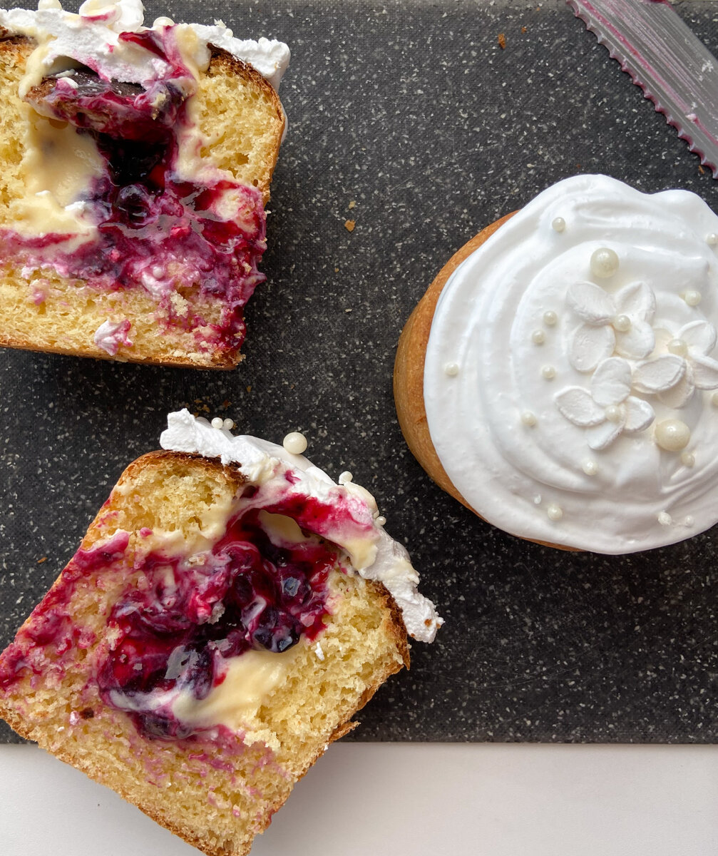 Всё дело в невероятно нежном творожном тесте и в заварном креме и ягодной начинке внутри! Готовим: 📌Необходимое количество ингредиентов и их список ищи в конце статьи! Тесто: Заварной крем: Ягодная начинка: Сборка: Сахарная глазурь: Ингредиенты на 3 кулича диаметром 9 см: Куличи: Заварной крем: Ягодная начинка: Сахарная глазурь: Приятного аппетита🤍 и Светлой Пасхи🕊️
