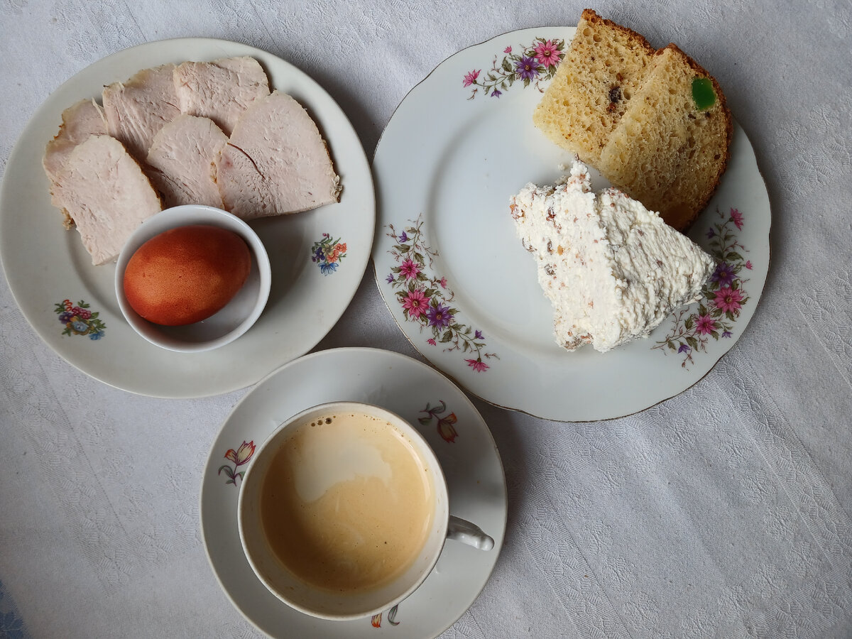 О моих запасах продуктов и бюджете на питание в мае можно почитать ЗДЕСЬ Каталог рецептов Покупка продуктов 1 - Мегамаркет, Вкусвилл, Магнит, Озон, Пятерочка Как и вчера, сегодня у нас пасхальное меню на завтрак: творожная пасха, куличи, крашеные яйца, пастрома из индейки. Кулич сегодня разрезали тот, что я пекла в хлебопечке по новому рецепту. Он давно у меня в закромах лежал, решила попробовать. Прекрасный кулич! творожная пасха по маминому рецепту. Делала порцию на 1,1 кг творога. Эта пасха тоже очень вкусная. Такую мы уже пару десятков лет в семье делаем. На обед оставалось всего понемногу: гороховый суп, спагетти с колбасой. Доедали наготовленное. На ужин приготовила то, что было запланировано на Пасху - суши торт и суши-шарики. Ленивый вариант роллов, скажем так. Готовится все гораздо проще и быстрее, чем роллы. Выглядит довольно презентабельно. Вкус роллов. 👌 Рыба у меня тут копченый голец. Рис, нори, творожный сыр и огурец.