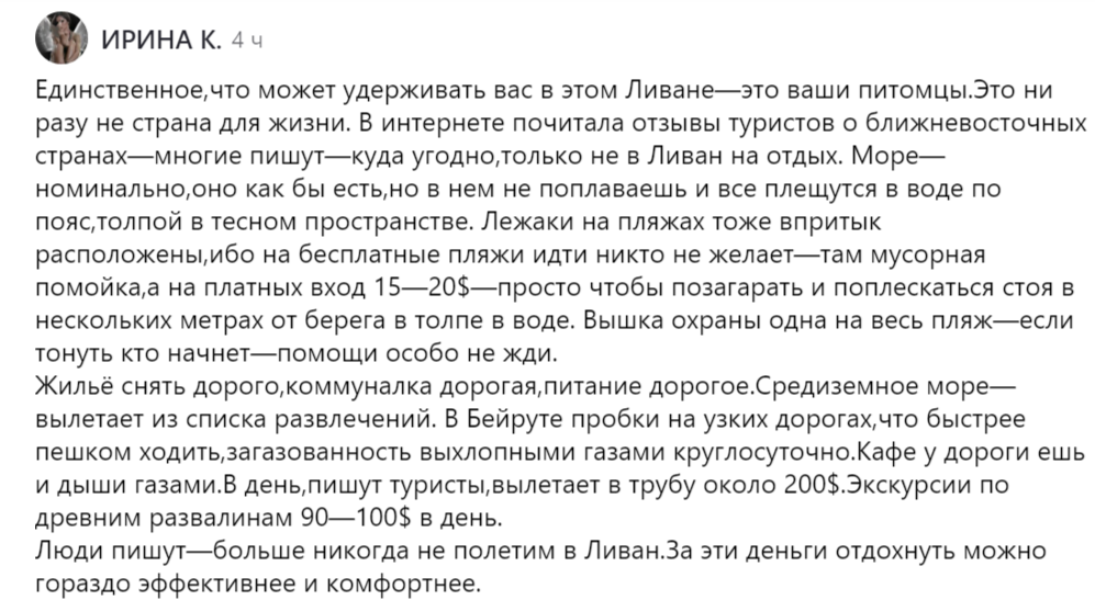 Вот, думаю, возьму я ее коммент и дам, думаю, многим интересный, развернутый комментарий. Ну, как "сеанс магии с разоблачением". Тем там, по сути, затронуто две. Сейчас развенчаю то, что относится к туризму. Потом то, что относится к проживанию в Ливане как таковому. Поехали!.