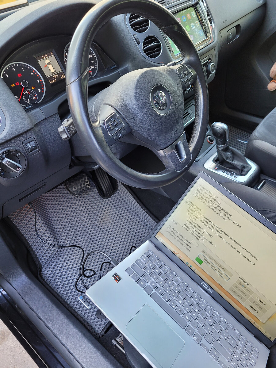 Заехал ко мне на активацию круиз-контроля фольцваген тигуан 1 рестайлинг. Замену подрулевых переключателей владелец производил сам. Переходим к активации. Заходим в блок 01-электроника двигателя. Выбираем кодирование. Длинное кодирование. Выбираем 6 байт и в нулевом бите ставим галочку. Круиз-контроль установлен. Переходим в блок 16- электроника рулевой колонки. Заходим в кодирование, длинное кодирование, выбираем второй байт. И в четвертом бите выбираем строчку "круиз-контроль управляется через рычаг указателей поворота". Заводим машину и включаем круиз-контроль. На приборной панели в нижнем левом углу должен появится значок активного круиз-контроля. После активации удалил ошибку по подушке безопасности. Во время монтажа владелец заводил машину с отключенной фишкой подушки. На этом активация окончена.