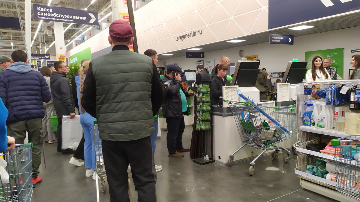 Поэтому я купила два 10-литровых пластиковых кашпо в сад (очень приличного тёмно-серого цвета), пакетик гвоздей, коробочку саморезов, ещё одни рабочие перчатки и жидкое удобрение для рассады в мелкой фасовке. Ну не уходить же с пустыми руками! А в Леруа было столпотворение. Ощущение, что пол-города пришло сюда праздновать Первомай. Только флагов не хватало). Эта движуха мне даже понравилась и я не бухтела по обыкновению себе под нос, что куча народу возле касс. Чтобы закрепить эффект п