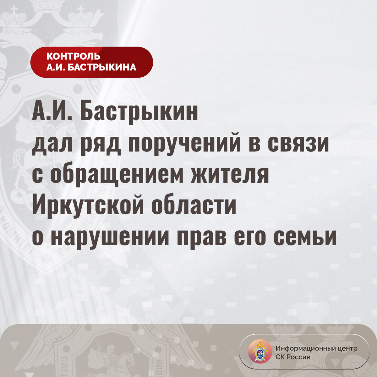 А.И. Бастрыкин дал ряд поручений в связи с обращением жителя Иркутской области о нарушении прав его семьи