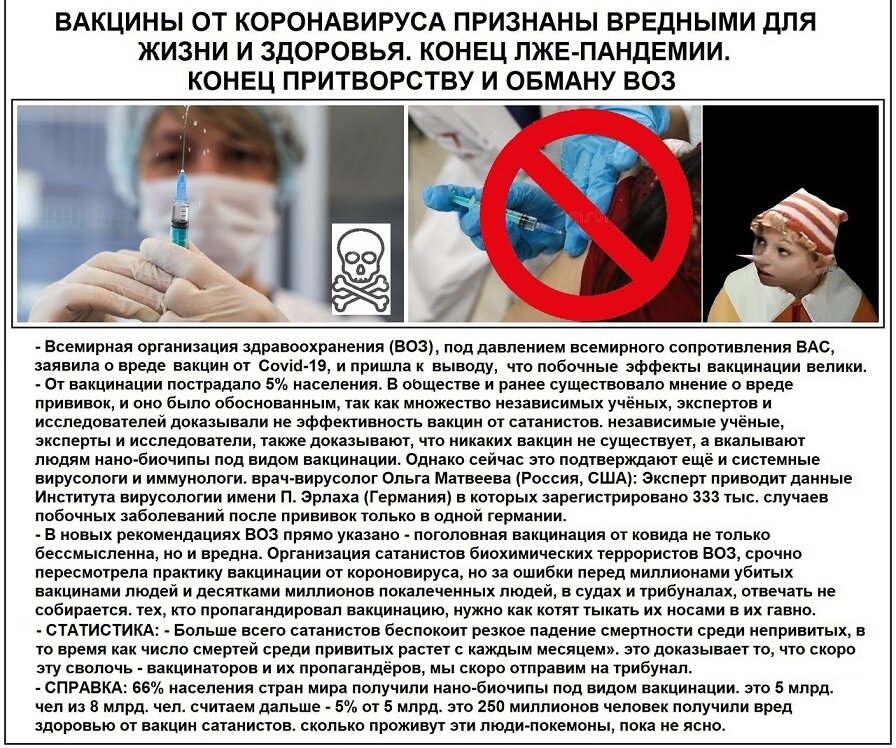 - В обществе и ранее существовало мнение о вреде прививок, и оно было обоснованным, так как множество независимых учёных, экспертов и исследователей доказывали не эффективность вакцин от сатанистов.
