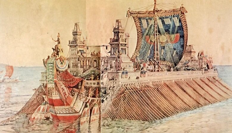 Гигантомания античных хроник бросает в дрожь. Например, греческий историк Мемнон в III веке до н.э. собственноглазно лицезрел восьмирядную октеру (поясняем для тех, кто не в курсе: триера — судно с тремя рядами весел, пентера — соответственно с пятью). Каждым ее веслом, пишет Мемнон, двигал отряд из 100 человек. Но это еще цветочки. В пот Плутарх пишет буквально следующее: «...враги дивились и восхищались, глядя на корабли с шестнадцатью и пятнадцатью рядами весел, проплывающие мимо их берегов». Эллинистический царь Птолемей II прославился сооружением одного двадцатирядного и двух тридцатирядных судов на острове Крит неким корабельным мастером...