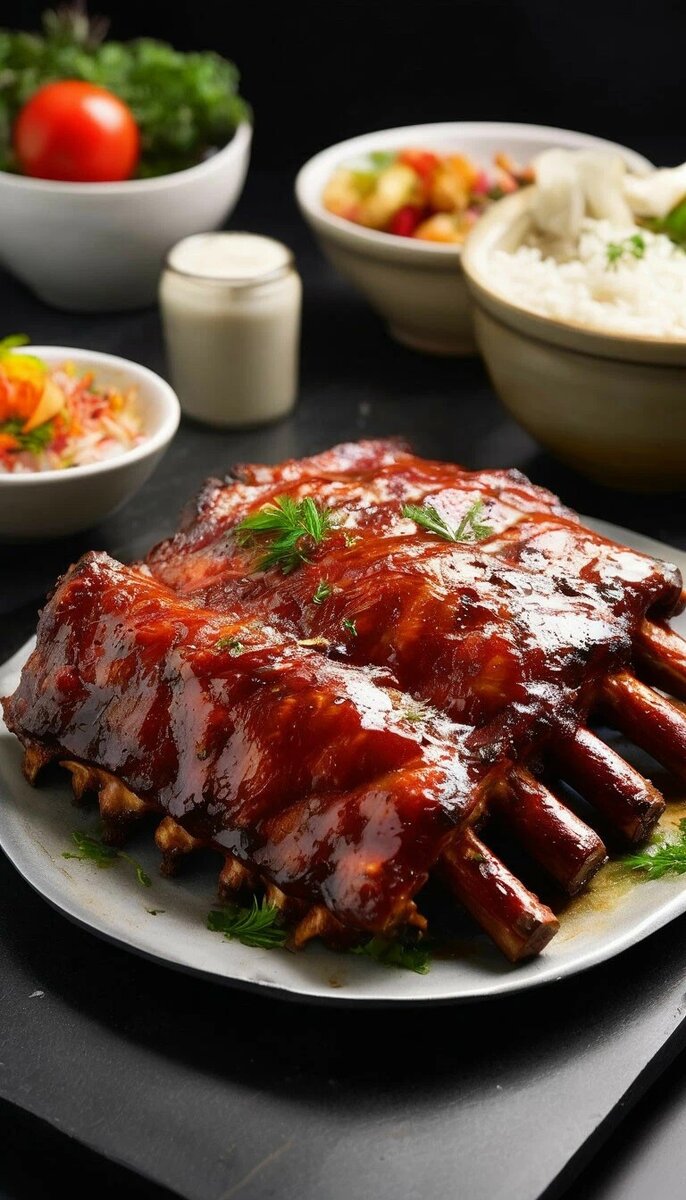 🍖 Рецепт №1: Классические запеченные свиные рёбрышки в духовке Ингредиенты: - Свиные рёбрышки – 1 кг - Соль, перец – по вкусу - Чеснок – 3 зубчика - Паприка – 1 ч. л. - Мед – 2 ст. л. - Соевый соус – 3 ст. л. - Кетчуп – 150 мл Приготовление: 1. Рёбрышки хорошо моем, просушиваем и натираем солью, перцем, измельченным чесноком и паприкой. 2. В миске смешиваем мед, соевый соус и кетчуп для соуса. 3. Обмазываем рёбрышки соусом и оставляем мариноваться на пару часов. 4. Запекаем в предварительно разогретой до 180°C духовке около 1-1,5 часов, периодически поливая выделившимся соком. 🍖 Рецепт №2: Свиные рёбрышки на гриле с медово-горчичной глазурью Ингредиенты: - Свиные рёбрышки – 1 кг - Мед – 3 ст. л. - Горчица – 2 ст. л. - Соль, черный молотый перец – по вкусу - Оливковое масло – для смазывания - Тимьян – 1 веточка Приготовление: 1. Рёбрышки натираем солью и перцем, оставляем мариноваться на 30 минут. 2. Для глазури смешиваем мед, горчицу и измельченный тимьян. 3. Рёбрышки смазыв
