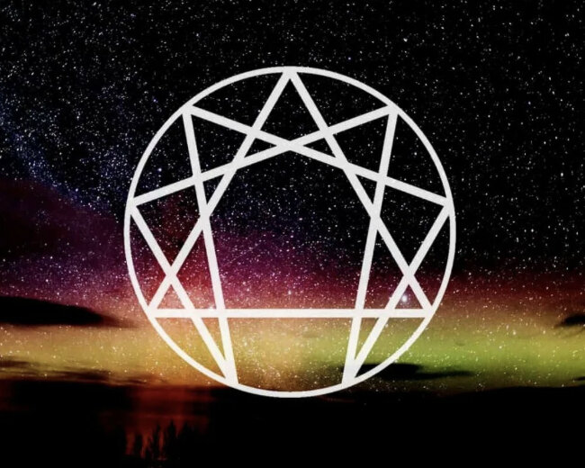 Символ эннеаграммы представляет собой геометрическую фигуру, на ней размещены 9 основных типов личности и их сложные взаимосвязи.
