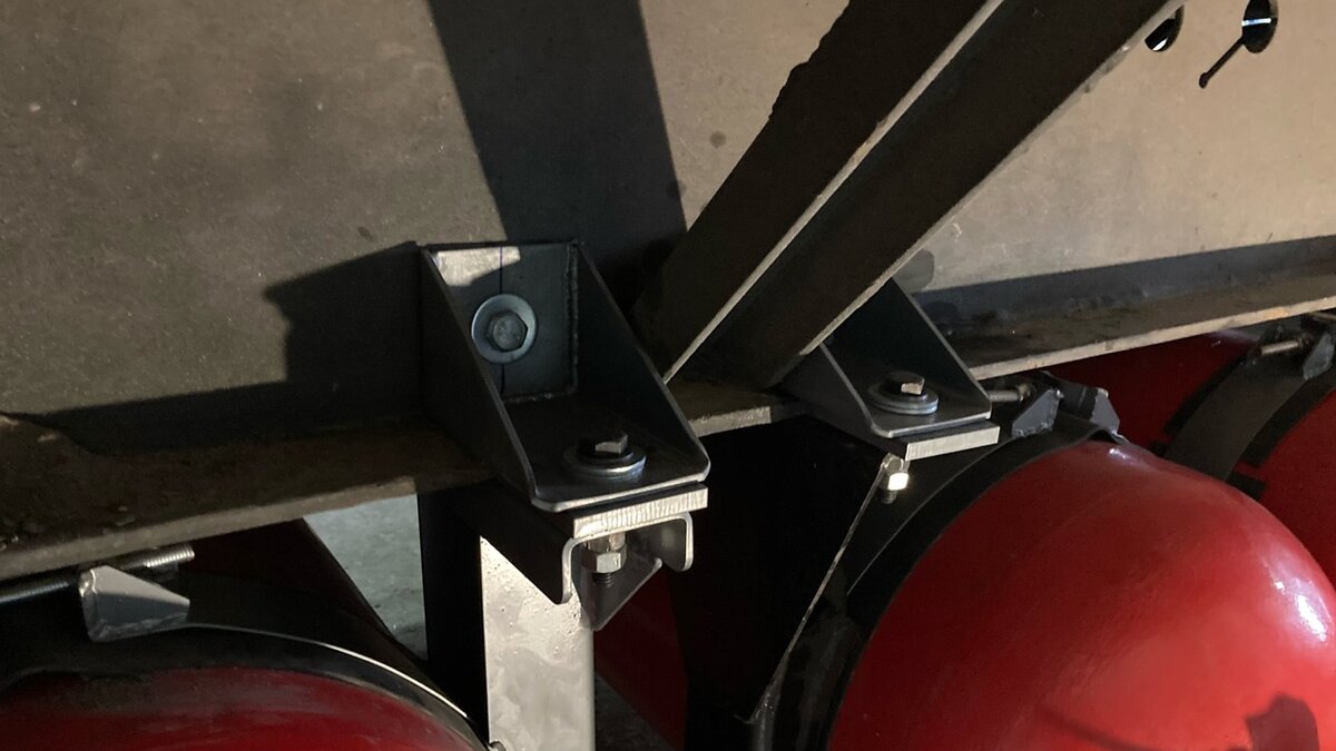 На фотографиях показаны варианты установки 4 дополнительных баллона по 200 л на трёхосный грузовой прицеп. Баллоны установлены на специально разработанные крепления. Топливные ёмкости тягача и прицепа соединены рукавами высокого давления в броне с использованием быстросъёмов и дополнительных кранов. Кронштейн запасного колеса сохранён. В остальном конструкция не претерпела каких либо изменений.