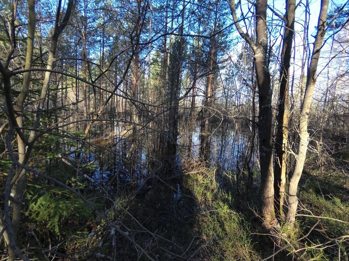 На улице прохладно, но сам факт того, что уже можно спокойно выйти в пеший поход, пройтись по земле, походить по залитому водой лесу - радует до восторга. Ясное дело, что через пару-тройку недель всё это уже "превратится" в некую обыденность, но на данном этапе - очень нравится. Солнечный день, выход в лес, цель простая: Вышел на пруд, который даже в самые жаркие дни не пересыхает полностью, лишь превращается в лужицу, берега которой проходимы, а воте если идти к центру - там тина. Пробовал, не особо комфортно. Хотя, может и не так всё страшно и глубоко, до конца испытывать не стал. Весной всё разливается, и даже небольшой пруд уже являет собой целое озеро. И дабы туристы, кто не из местных, не забрели туда, куда не нужно, вот такие опознавательные знаки есть. Полезно? Конечно! И что характерно: вокруг деревья, и может показаться, что это просто так талые воды всё наполнили, но нет, тут озерцо. Это я к тому, что если не знать местности, предварительно её не изучить, можно "очень дале