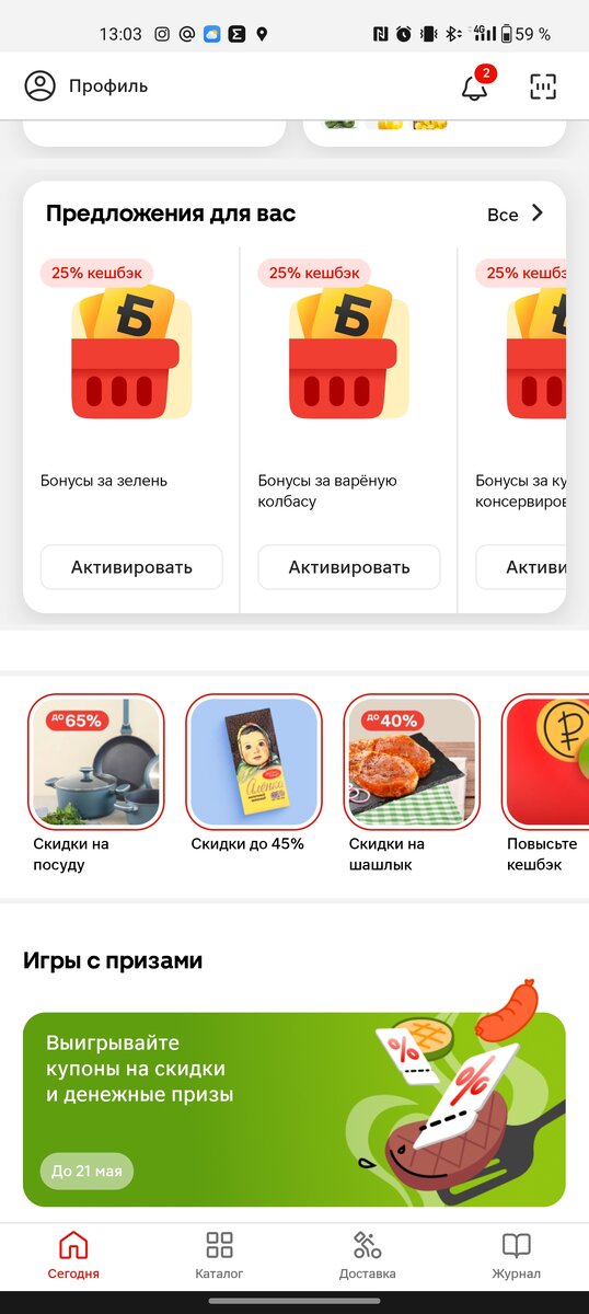 1. Запускаем в приложение 2. Нажимаем на "Предложения для вас" Фактический результат - получаем сообщение, что нет подключения к интернету и не отображается персональные предложения. С интернетом всё в порядке. Так же касса показывала иероглифы, сумма отображалась верная. @magnitretailrussia