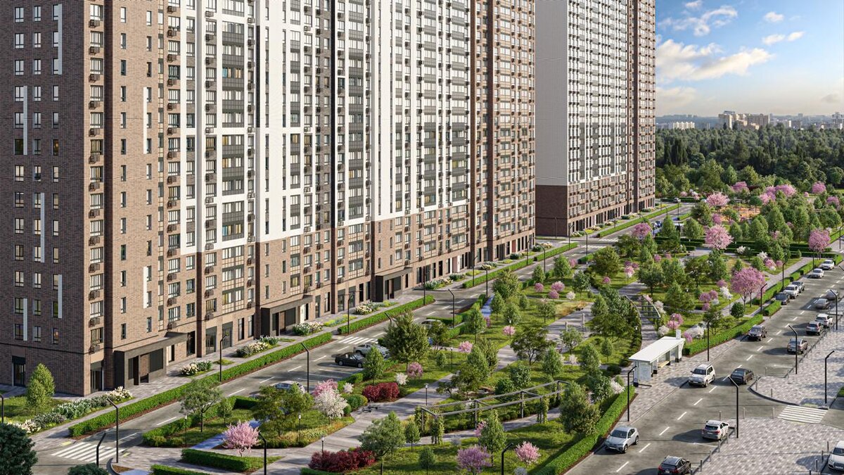 Пешеходный бульвар длиной 380 метров и шириной 60 метров станет настоящим центром активной социальной жизни. Причем не только для жителей жилого комплекса, но и окружающих районов. Он свяжет различные секции ЖК и школу; в нем будут проложены маршруты для прогулок с разнообразными активностями для всех возрастов; рядом с бульваром обустроят площадку для мероприятий, игровые и спортивные зоны, места для отдыха и кафе. Пешеходные дорожки вымостят красивой плиткой.