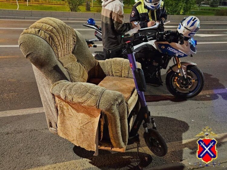 В минувшие выходные в социальных сетях появилось видео с необычным транспортом на дорогах Волгограда. Лихач разъезжал по проспекту Ленина на кресле и нарушал правила дорожного движения. Как сообщили Волжский.ру в ГУ МВД по Волгоградской области, 30 апреля сотрудники мотовзвода городской Госавтоинспекции остановили водителя электросамоката, который установил на средство мобильности мягкую мебель. 22-летнего волгоградца привлекли к административной ответственности по ч.2 ст. 12.29 КоАП РФ. Штраф составит 800 рублей.