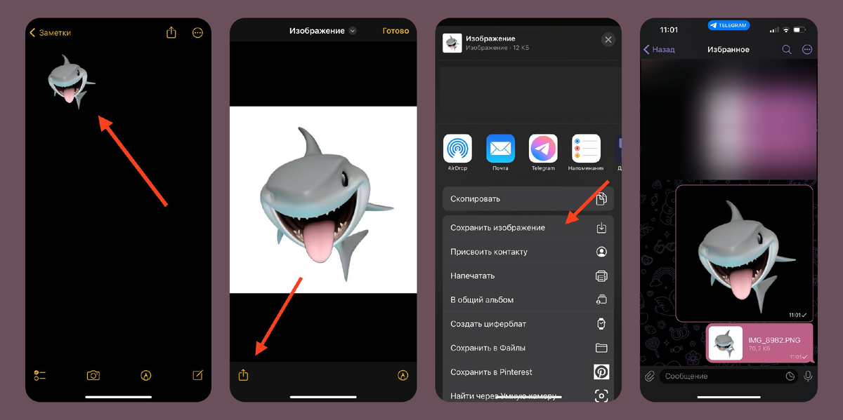 В мире современного дизайна и коммуникаций роль графических элементов продолжает расти, а одним из наиболее ярких и популярных трендов последних лет являются стикеры Memoji. Они стали неотъемлемой частью цифровой коммуникации, добавляя индивидуальности и эмоциональной глубины в оформление и дизайн. Как же сохранить собственный стикер в фотопленку в формате .png с прозрачным фоном и использовать в дизайне? 1. Откройте «Заметки» 2. Нажмите на значок «Создать новую заметку» в правом нижнем углу 3. Тапните на значок эмодзи на клавиатуре, смахните вправо, чтобы увидеть стикеры Memoji и вставьте в заметку нужный стикер 4. После добавления нажмите на наклейку, чтобы открыть ее в полноэкранном режиме 5. Нажмите кнопку «Поделиться» в левом нижнем углу и выберите пункт «Сохранить изображение» 6. И далее я отправляю изображения себе в Телеграме, обязательно прикрепив их «как файл», иначе получаются изображения с фоном