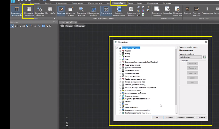 Правильно настроенный для работы нанокад - это уже почти 10% успеха. После индивидуальной настройки в программе становится удобно. В основном все настройки в nanoCAD находятся на вкладке Настройки. Ранее писали 2 статьи про интерфейс нанокада - посмотреть.