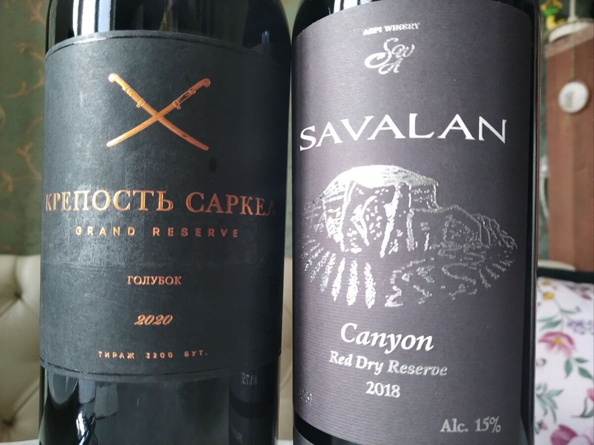 Недавно на меня большое впечатление произвело вино "Крепость Саркел Голубок Гран Резерв". Я выставил 92 балла, и горел желанием сравнить его с серьёзным вином. Ведь это ещё неизведанная территория, такого вина мало. Как оценить, как будет храниться и т.п. Изготовлено оно из сорта голубок урожая 2020 года, разлито в августе 2022 года. В какой-то момент магазин Winestyle написал про него "ограниченное количество" и дал скидку 20%, и отдавал по цене 2,4 тысячи рублей. В ту же цену мне обошлось самое дорогое вино азербайджанской компании Savalan, где, кажется, рулят итальянцы, и которую я очень уважаю за отличные вина по невысокой цене, если брать там. Это Savalan Canyon из пти-вердо, мерло, каберне-франа урожая 2018 года. При известном мне соотношении цена-качество у "Савалана", я ожидал классное вино. И оно не подвело. Очень богатый и мягкий аромат, весьма насыщенный. Ягоды, специи, пряности, сухофрукты, табак, цветы... Всё это меняется и играет в бокале! Это просто супер. Вкус очень м