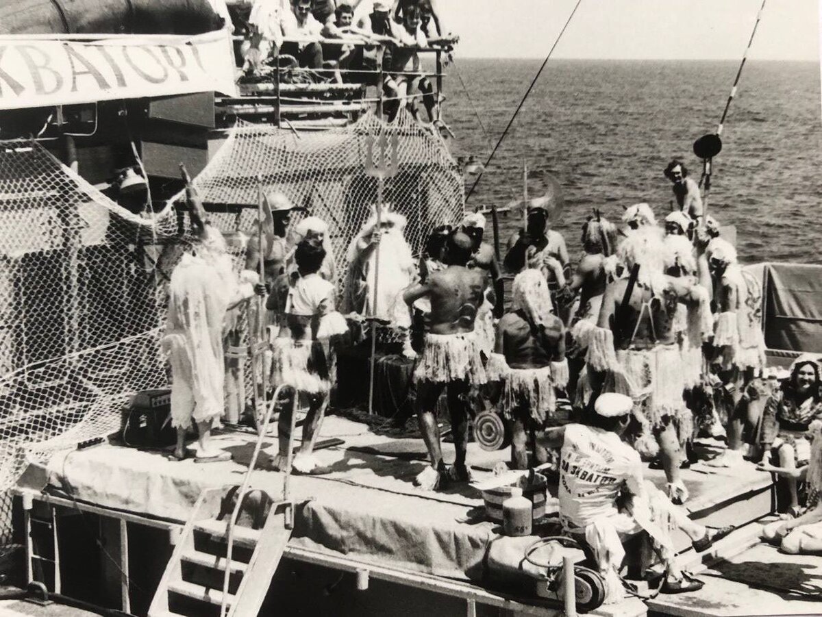 Готовимся: запасаемся всем необходимым для жизнеобеспечения экипажа и судна, производственной деятельности. Пока вы с интересом рассматриваете фотографии периода первого загранрейса, я расскажу историю сварщика нашего. Почему именно сварщика, спросите вы? Его профессия здесь ни причем. А вспомнил я его по одному комментарию под моей статьей о работе на плавконсервном заводе. В комменте спросили что-то о фамилии сварщика... Итак, работал на плавбазе сварщиком один парень, лет тридцати примерно. Я его видел всегда, не то чтобы хмурым и неулыбчивым, а скорее поникшим каким-то. То, что произошло далее, своими глазами я не видел. Но эту историю с детальным описанием узнали все. В один из дней, что-то в его голове перемкнуло. Он прыгнул за борт и поплыл. Как был в рабочей одежде, так и сиганул в море. Хорошо, что неподалеку были люди. На крики он не отвечал, спасательный круг проигнорировал. По тревоге готовились спустить мотобот за борт. А время то идет, утонет дурачок. Тут какой-