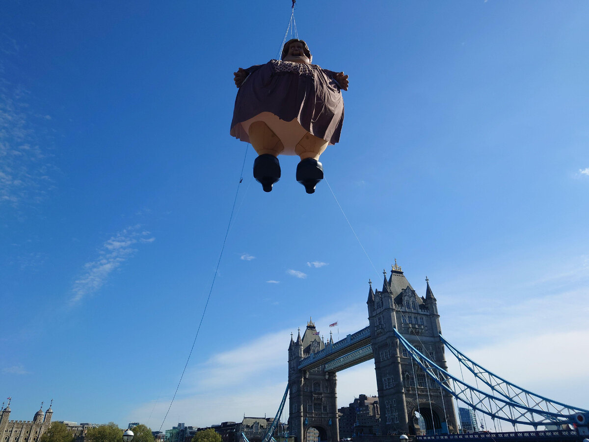 Огромную фигуру тетушки Мардж из фильма «Гарри Поттер и узник Азкабана» запустили над Тауэрским мостом в Лондоне. Арт-объект подготовили к 20-летию со дня премьеры третьей части легендарной франшизы. По сюжету истории Мардж оскорбляет родителей Гарри Поттера, после чего юный волшебник выходит из себя и применяет к ней магию. Женщина надувается до огромных размеров и вылетает из дома в ночное небо. Надувная тетушка высотой шесть с половиной метров весит более 95 килограммов. Над гигантской фигурой трудились 264 часа, всю работу выполняла команда из 16 человек — в том числе художники, дизайнеры и швеи. Дизайн и эскизы будущего проекта разрабатывали около двух суток. На покраску головы и волос ушло 18 часов, еще 32 часа потребовалось, чтобы скроить одежду. Фото: legion-media.ru