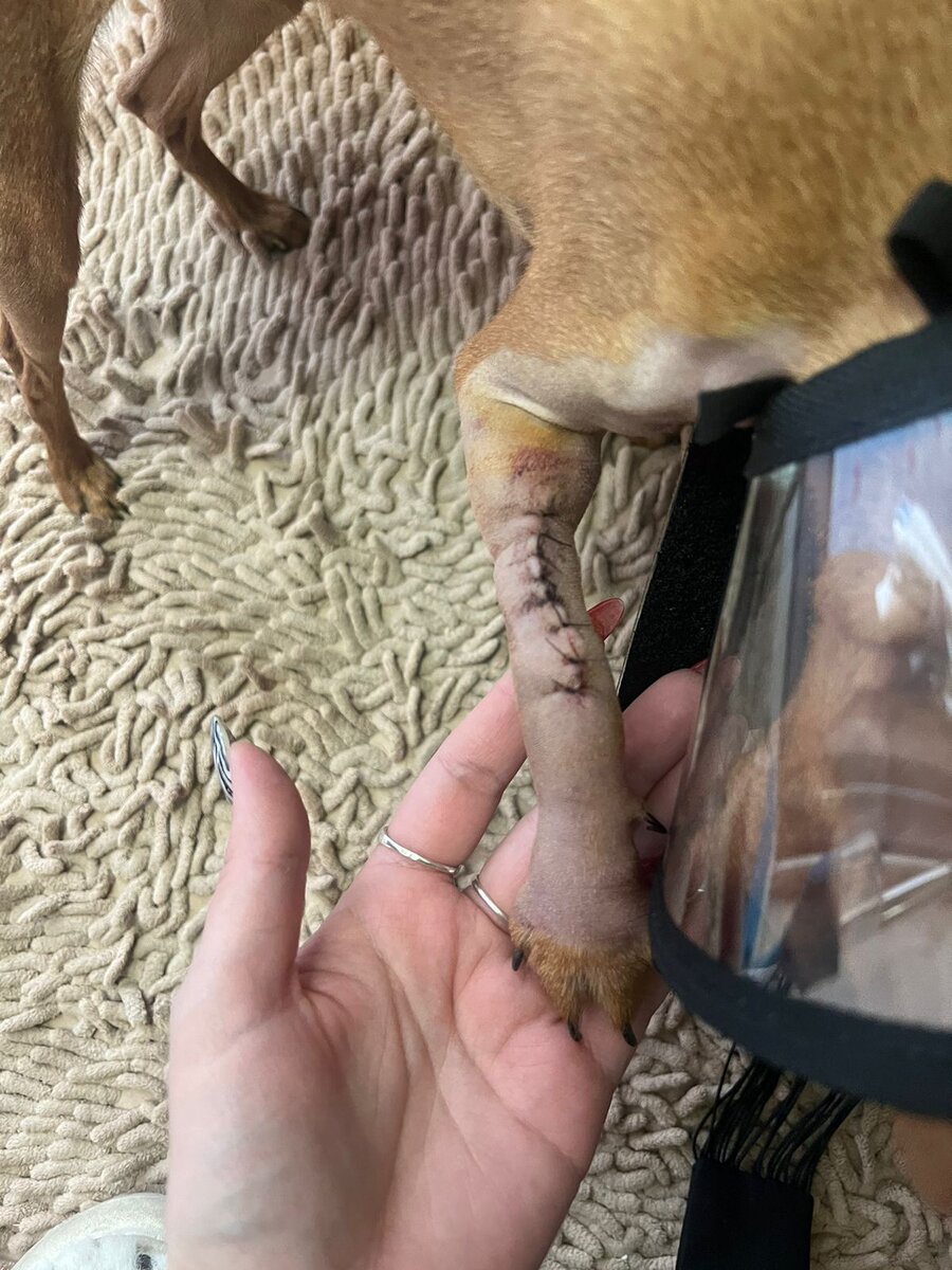 Привет всём неравнодушным, кто следит за нашими событиями и переживает за Айлочку!🥰 Вчера Катюша была очень озадачена и обеспокоена тем, что лапка у Айлы сильно опухла. 😳 Прошли только сутки после операции. Однако сегодня с утра она скинула мне фотку и сообщила, что отёк спадает. 😍 Ура. Всё хорошо. Можно успокоиться. Кушает Айлочка хорошо, но только самое вкусное. Обычный корм не ест. Ну это и понятно. Как любой ребёнок, в период болезни. Это нормально. 🥰 Бегает за своей мамкой Катюшей, ни на минуту её не упускает из виду. Конечно, когда она дома.