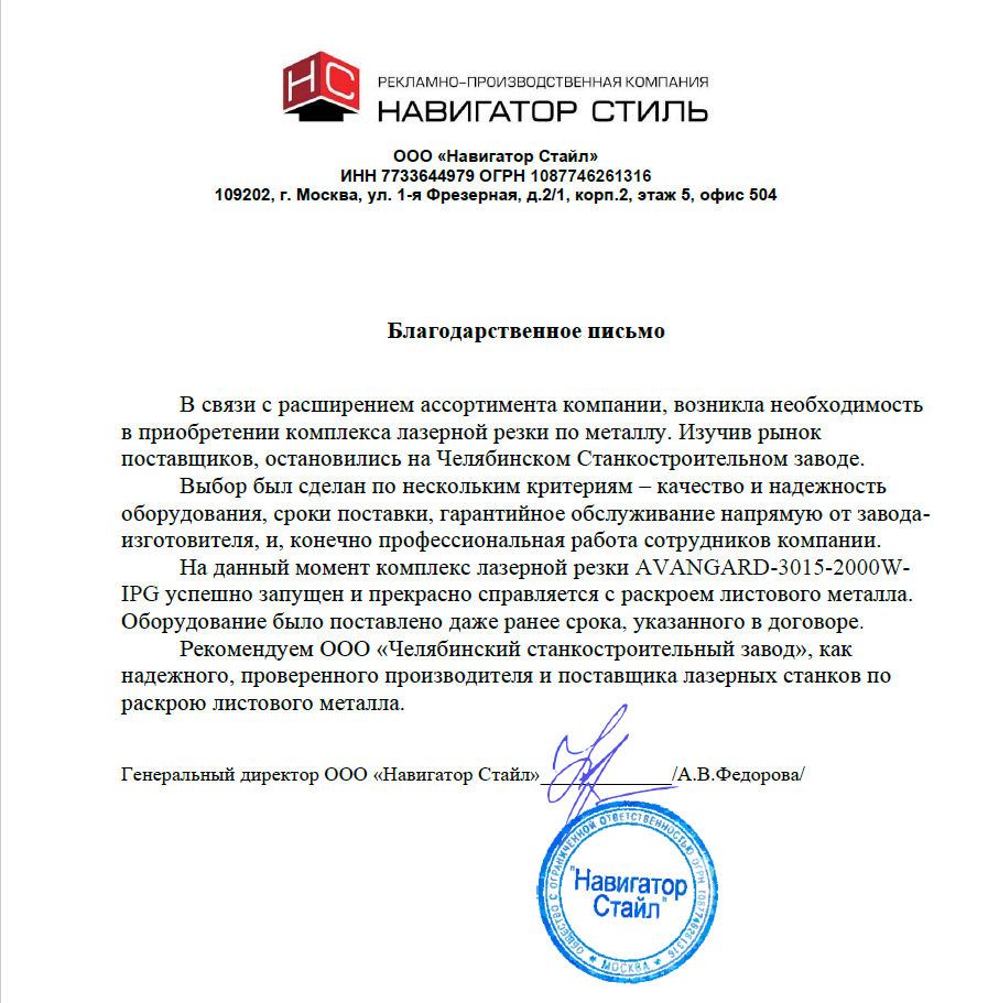 Получили новые отзывы о работе лазерных станков AVANGARD и CHAMPION производства ЧСЗ!