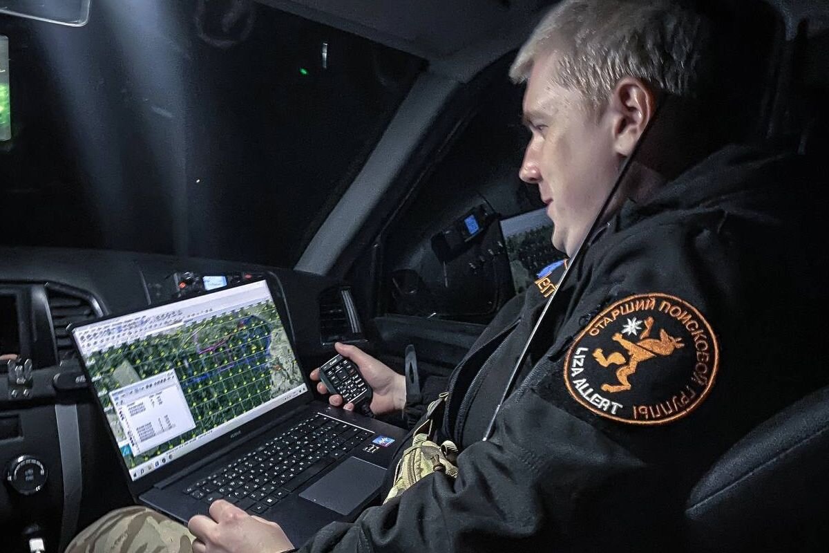 После прибытия и краткого инструктажа поисковые группы отправляются на поставленные задачи. Старший по поиску в это время работает в ноутбуке, разглядывая снимки местности, не теряя надежду на нахождение Николая Егоровича.