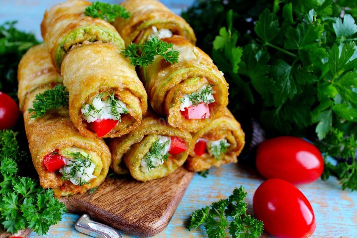 6. Подавайте рулеты из кабачков горячими, украсив свежей зеленью. Приятного аппетита!