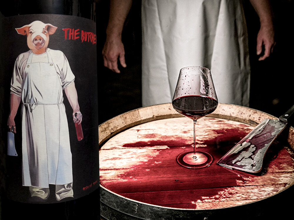 Цветы – не самый практичный подарок, постоят пару дней, а дальше в мусорку. Другое дело – свиная голова. Это и суп, и холодец, и просто красиво(с). Сегодня у нас речь пойдёт о свиной голове, украсившей этикетку вина Butcher (мясник). Довольно необычное для вина название, требующее некоторого пояснения. Дело в том, что его действительно делает мясник Ганс Шварц. Небольшая семейная винодельня с виноградником досталась ему по наследству и долгое время была для папаши Шварца хобби. Предавался он ему в свободное от работы на скотобойне время. Вина выпускал трохи, тiльки для себе, а остальной виноград сдавал в местный кооператив и соседу Алоису Крахеру. Вот уход за виноградником был уже не хобби, а обычной работой на ферме, которой Ганс занимался весьма обстоятельно. Все отмечали высокое качество винограда, настойчиво советуя Шварцу заняться виноделием самостоятельно. И уговорили-таки. В 1999 году с помощью знакомых калифорнийских виноделов Крахера и Манфреда Кранклов из «Sine Qua Non» Ганс
