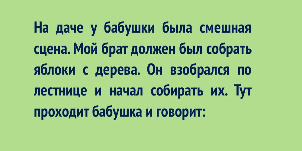 Настроение плохое? Не беда! Мы приготовили для вас десять смешных историй, которые подарят вам порцию позитива и сделают ваш день незабываемым. Уступите место! Утром ехала в метро, сидела на корточках у закрытой двери и читала книгу. Было много народу. Я просто слушала музыку и читала, вот и улыбнулась от забавного момента в книге. Тут вошли две старушки. Девушка рядом встала и уступила место первой из них. Вторая старушка начала орать на нее и даже пожелала ей смерти. Потом она увидела, что я улыбаюсь, и начала кричать уже на меня, требуя, чтобы я уступила место. Я немного ошарашена, но встаю и говорю: "Садитесь, пожалуйста". И тут весь вагон просто ржал. Ирония судьбы Вчера моя семилетняя дочь впервые посмотрела фильм "Ирония судьбы" и сказала, что это хороший фильм, но… Он про мерзких людей. Она считает, что только Ипполит там нормальный. А это кто вообще такие? Смотрю телик у брата. Вдруг прибегает мой маленький племяш: - Дядь, а что такое программисты?? - Тебе мама лучше ответит н