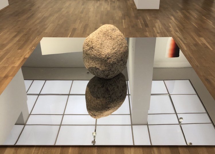В инете нашла, что эта инсталляция относится к зеркальному искусству, очевидно кто-то засмотрелся в зеркало на своё отображение и превратился в камень, как в своё время юноша Нарцисс, увидев своё отражение в воде и влюбившись в него, превратился в прекрасный цветок.